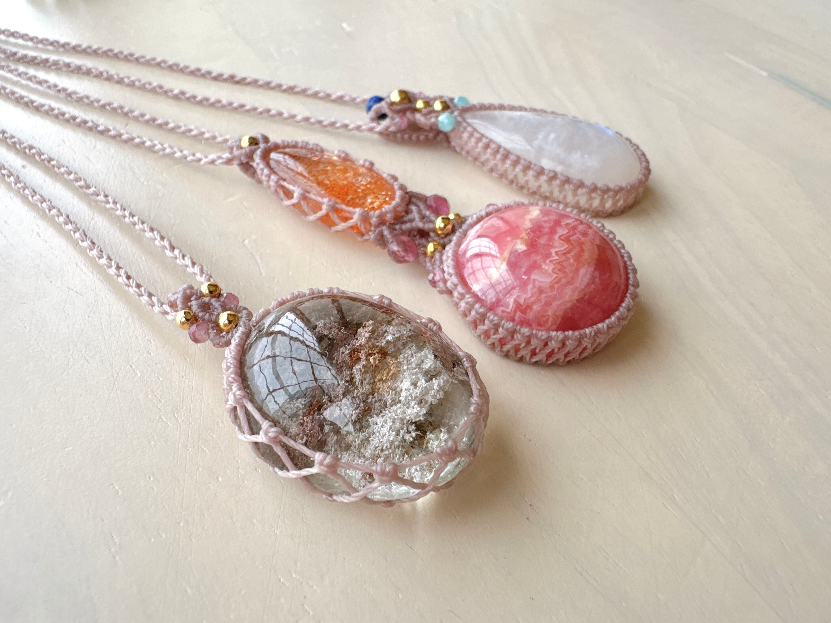 淡い暖色系の内包物がふわ〜っと入った透明度の高いガーデンクォーツにピンクトルマリンビーズを合わせました。