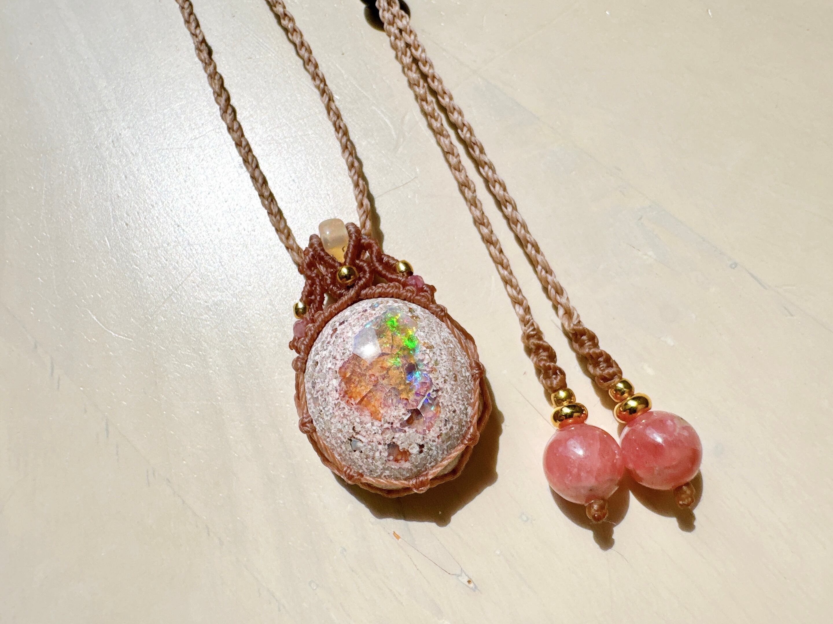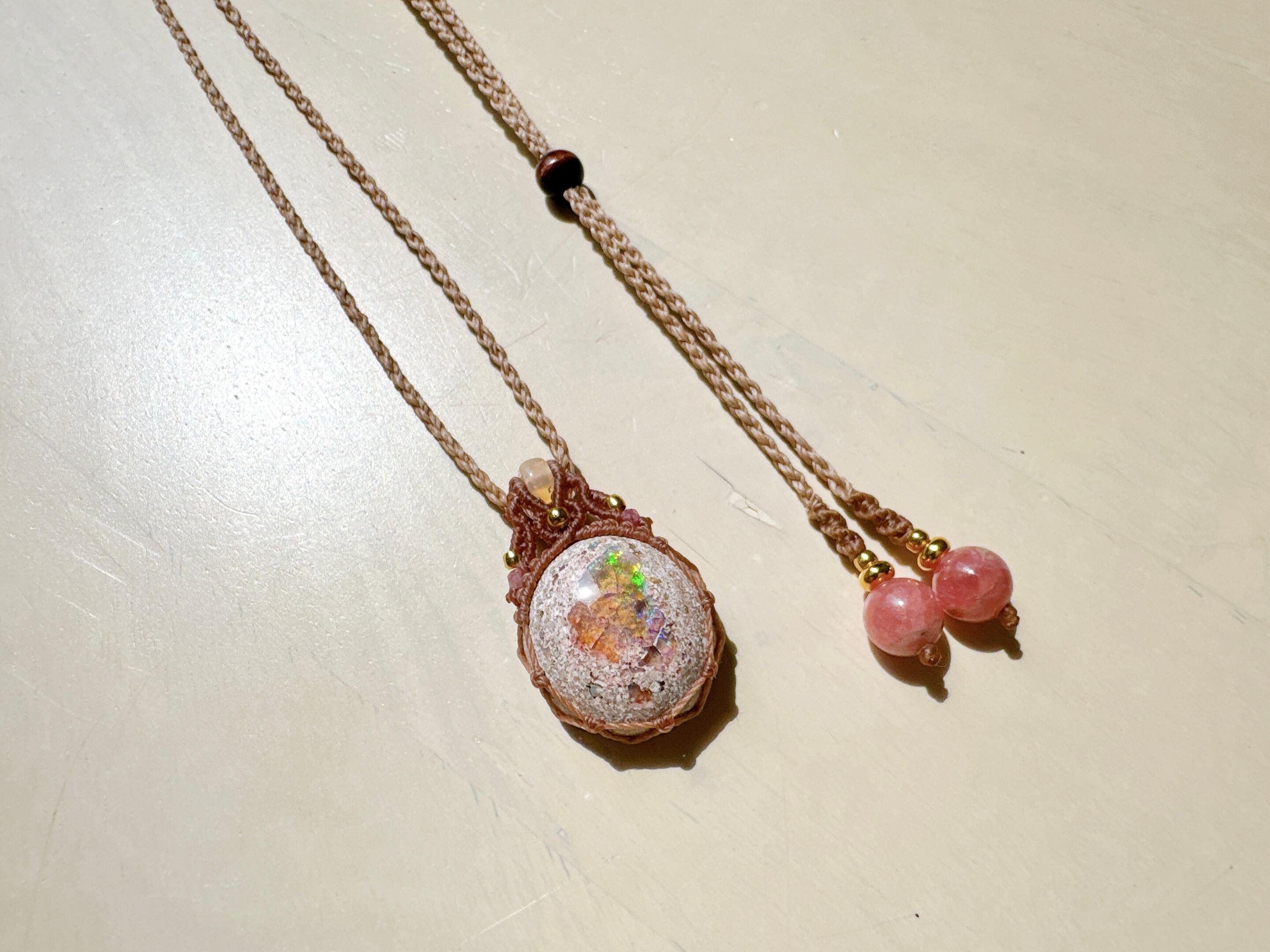 遊色が美しいカンテラオパールにオパールビーズとピンクトルマリンビーズを合わせました。