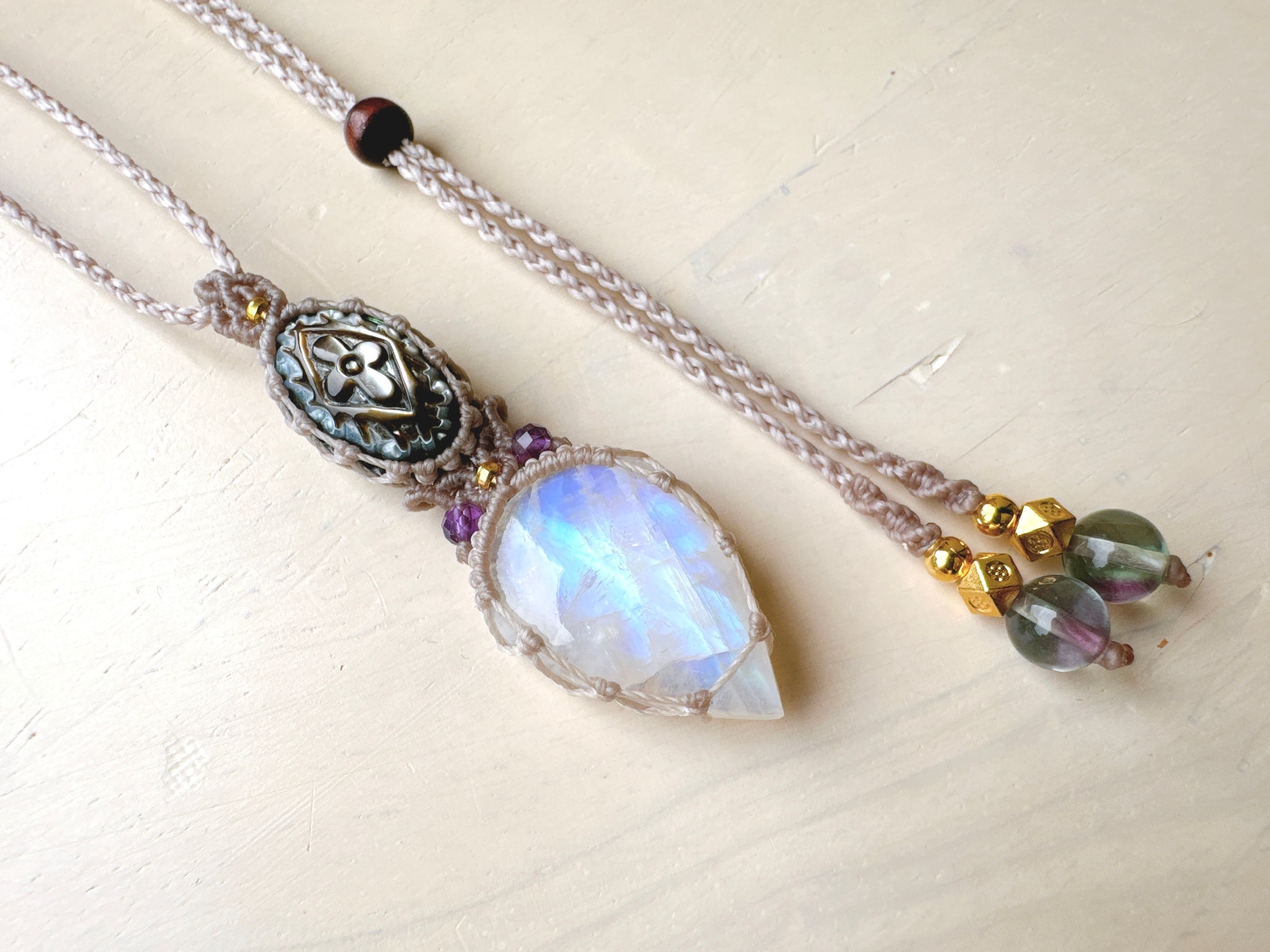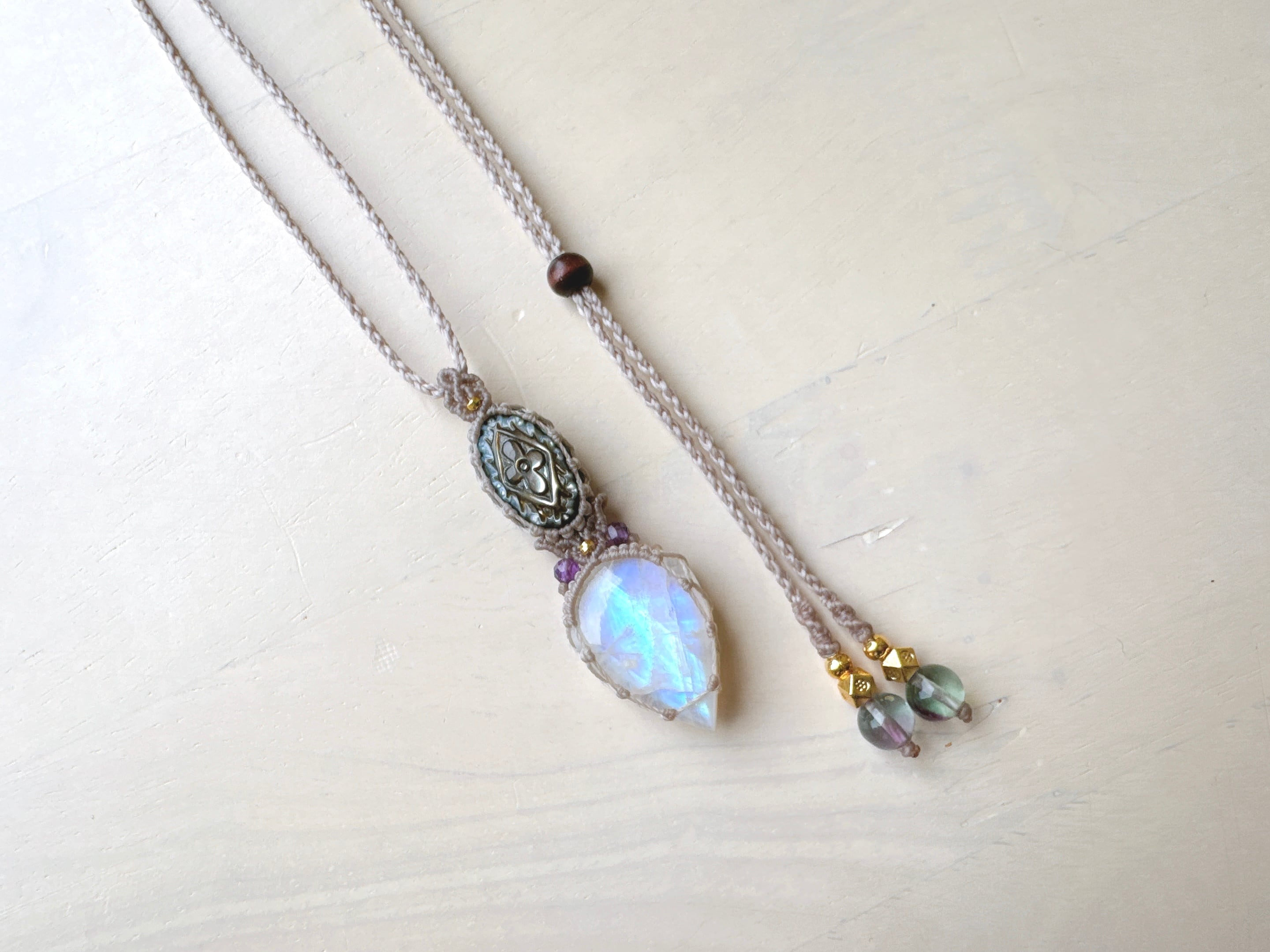 ペンダントトップにはアメジスト、首紐にはフローライトビーズを使用しています。