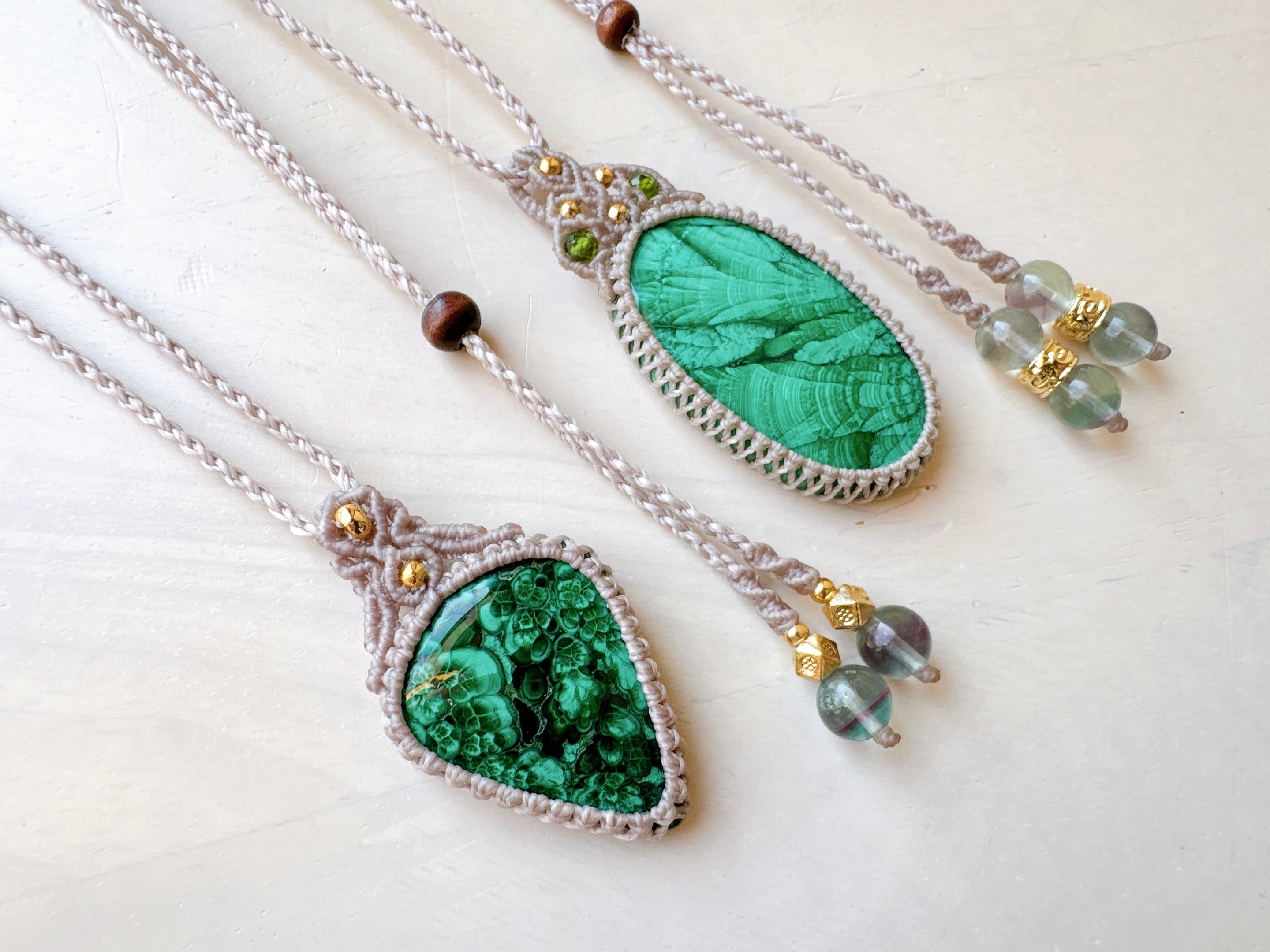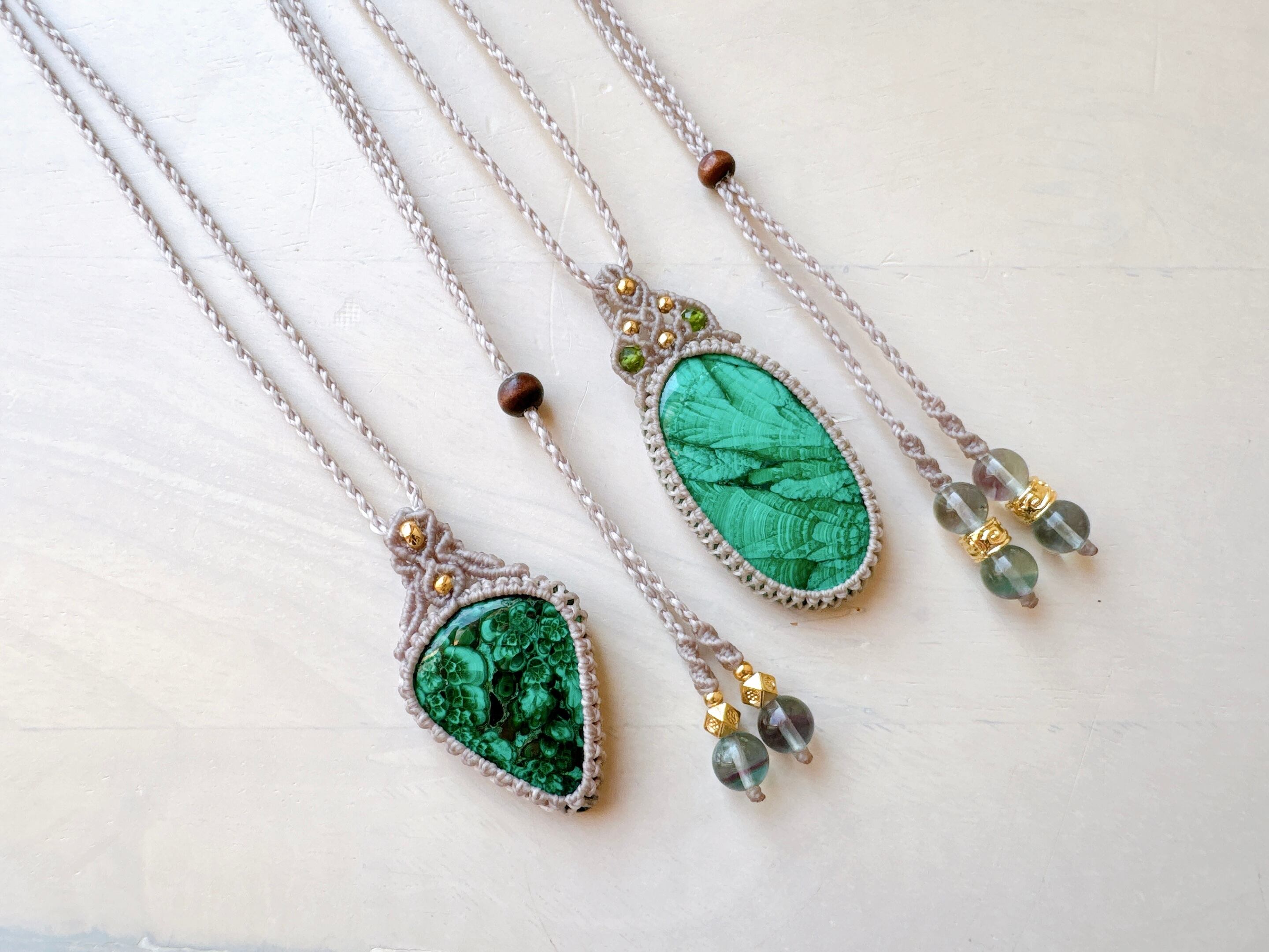 もこもことしたお花のような模様が個性的なマラカイトのペンダントです。
