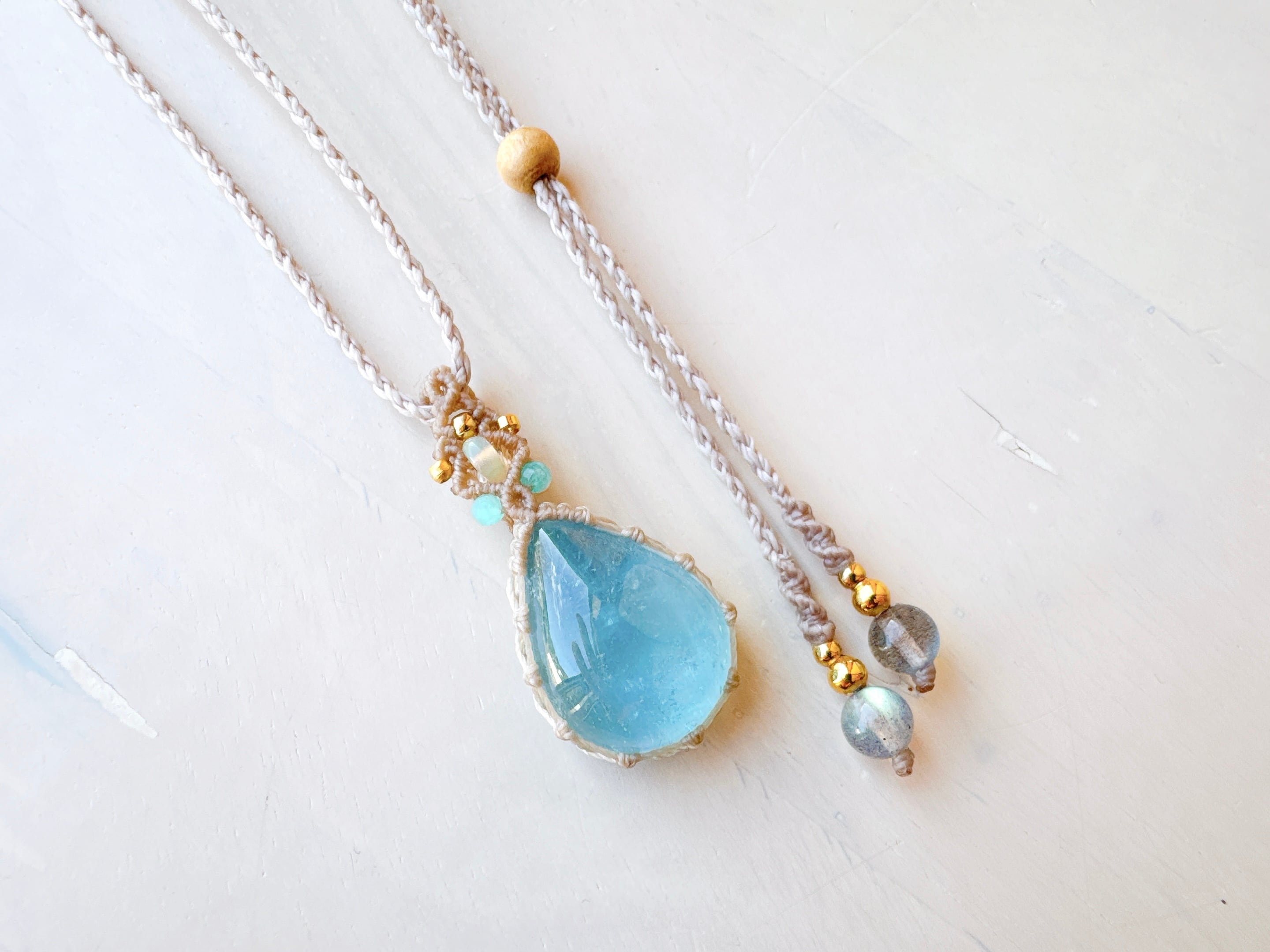 首紐には高品質なラブラドライトビーズを使用しています。