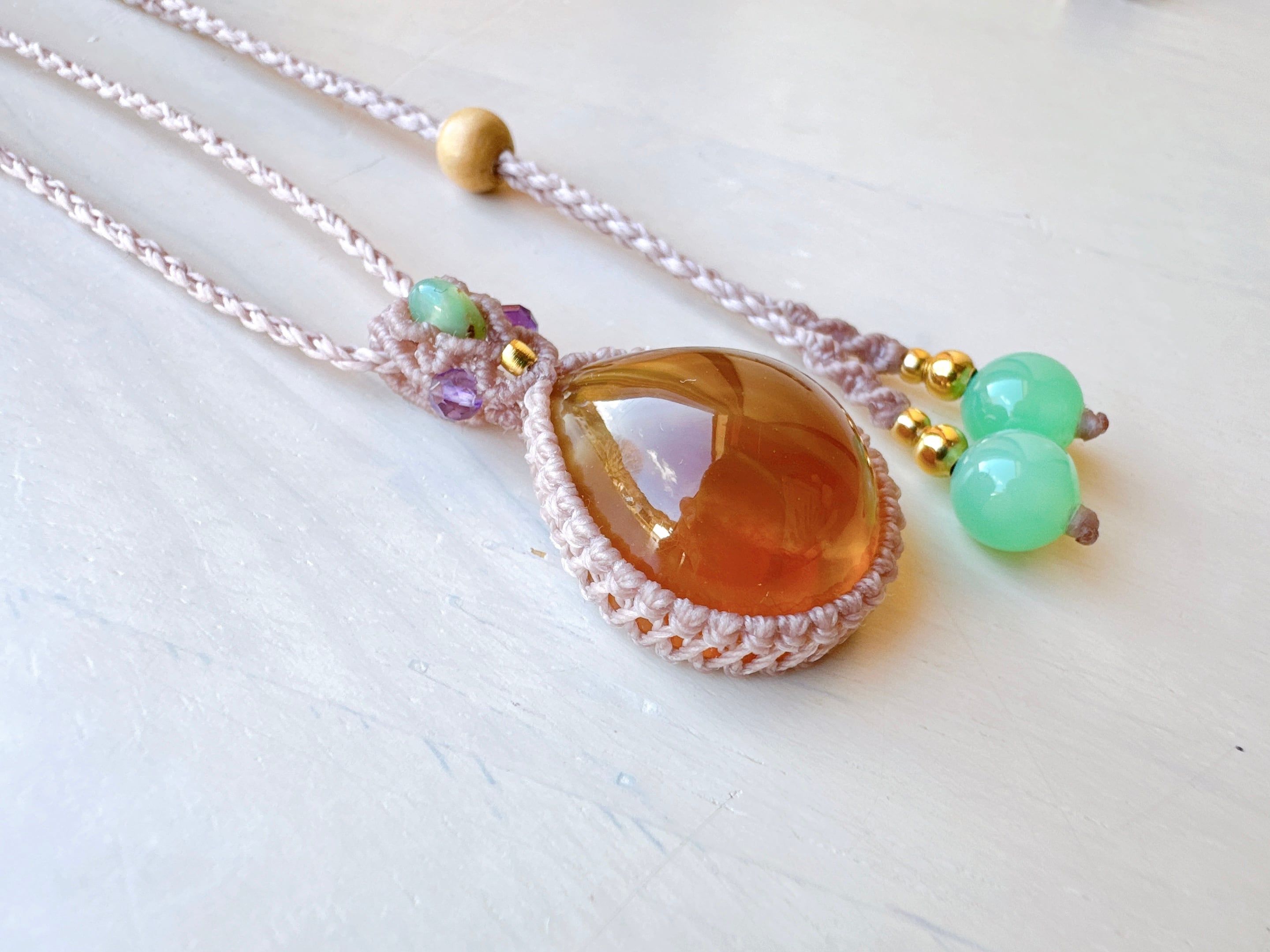 ペンダントトップになクリソプレーズとアメジストビーズを合わせました。