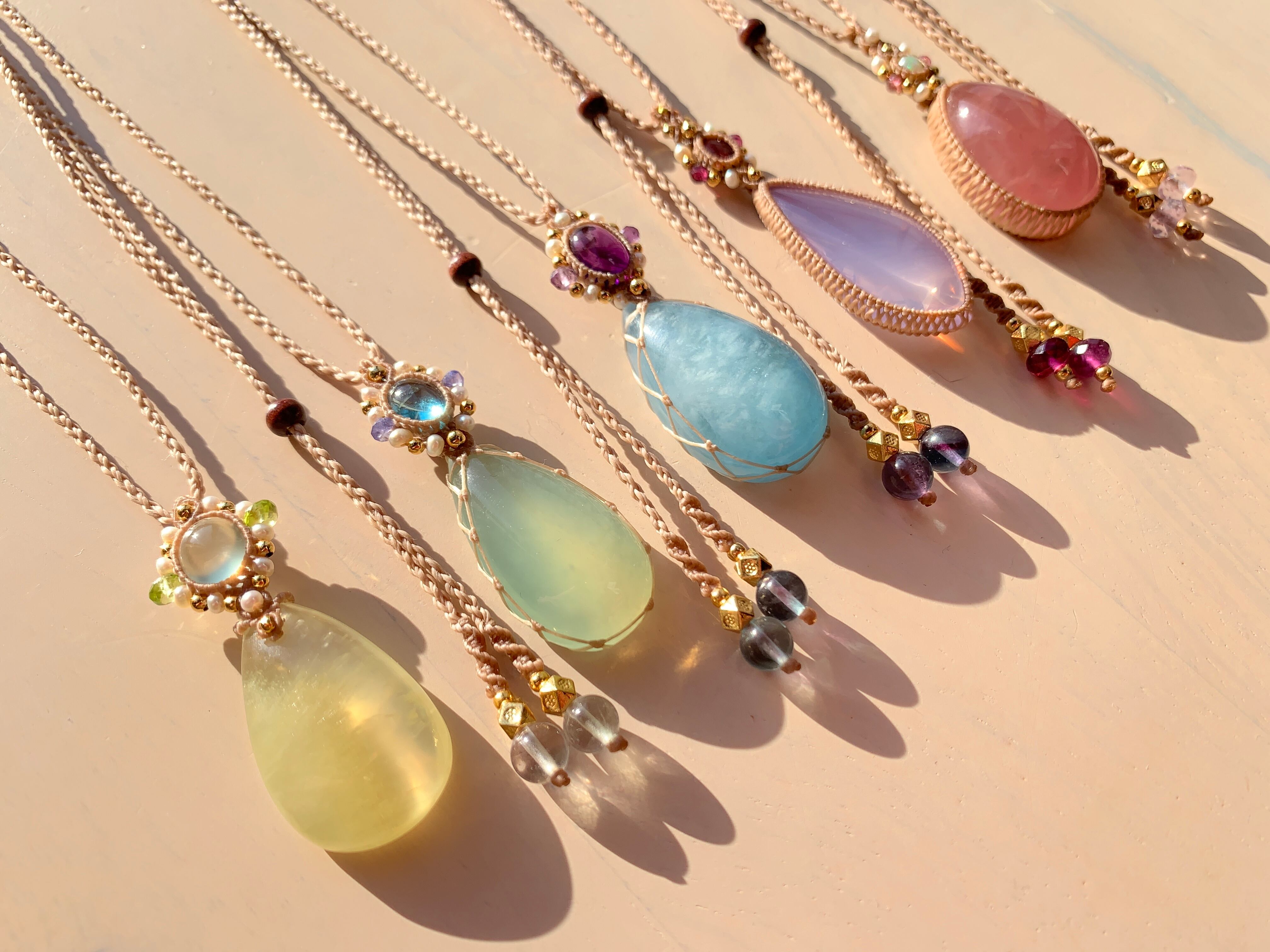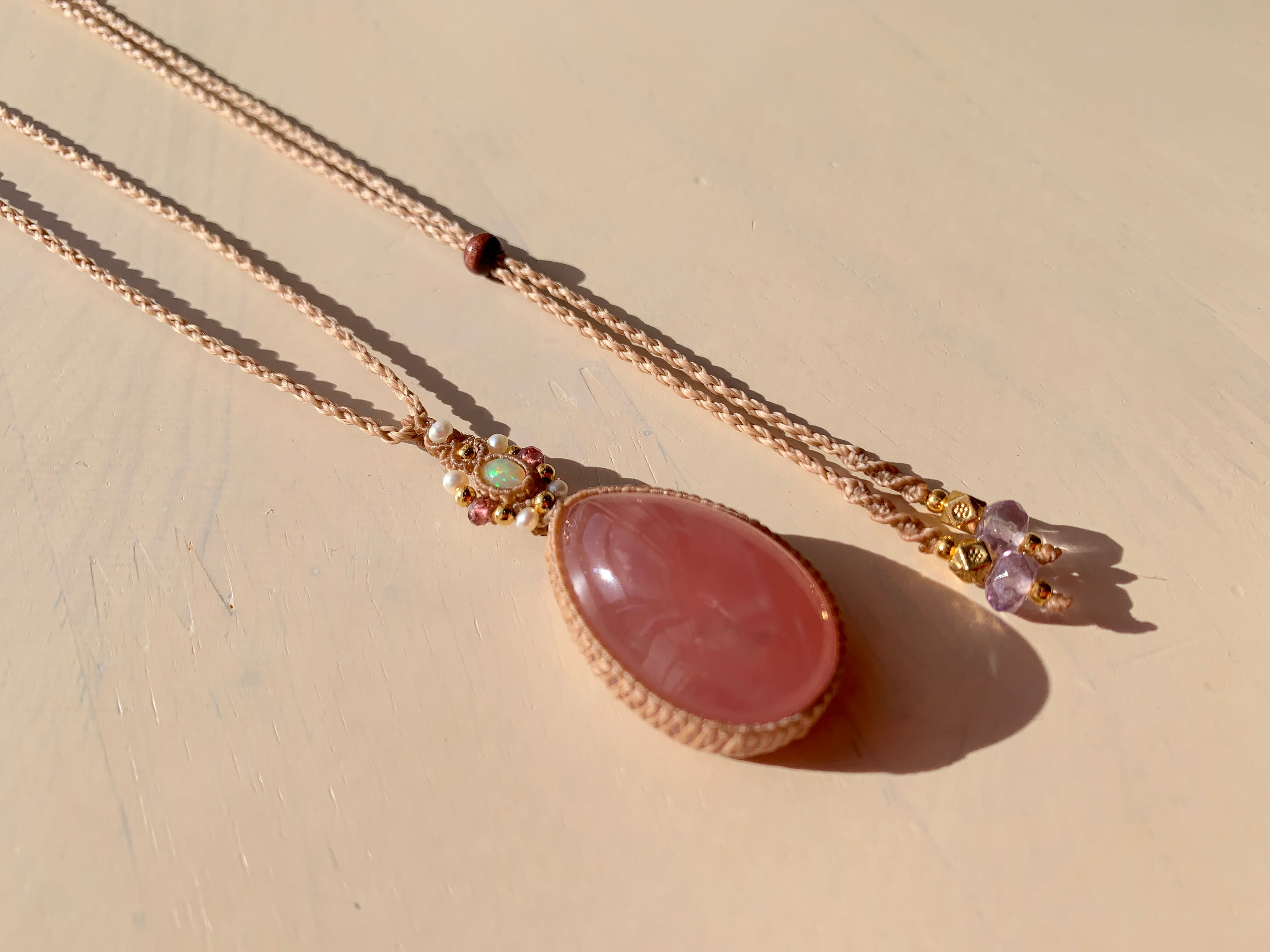 プルプルなディープローズクォーツに遊色が美しい小粒オパールを合わせました。