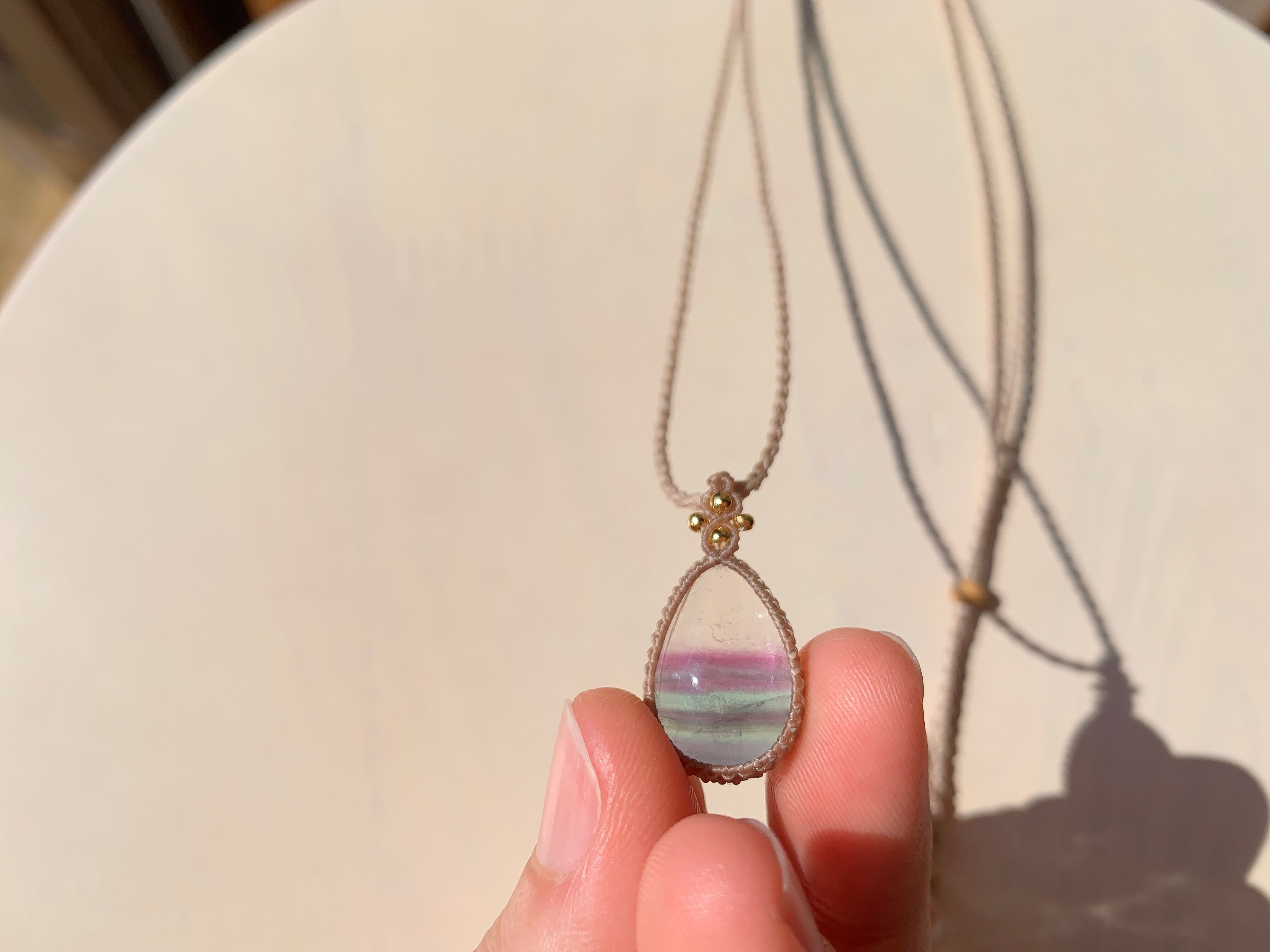 ぷっくりツヤツヤで水色と紫の縞模様が可愛らしい、身につけやすい大きさとデザインのペンダントです。