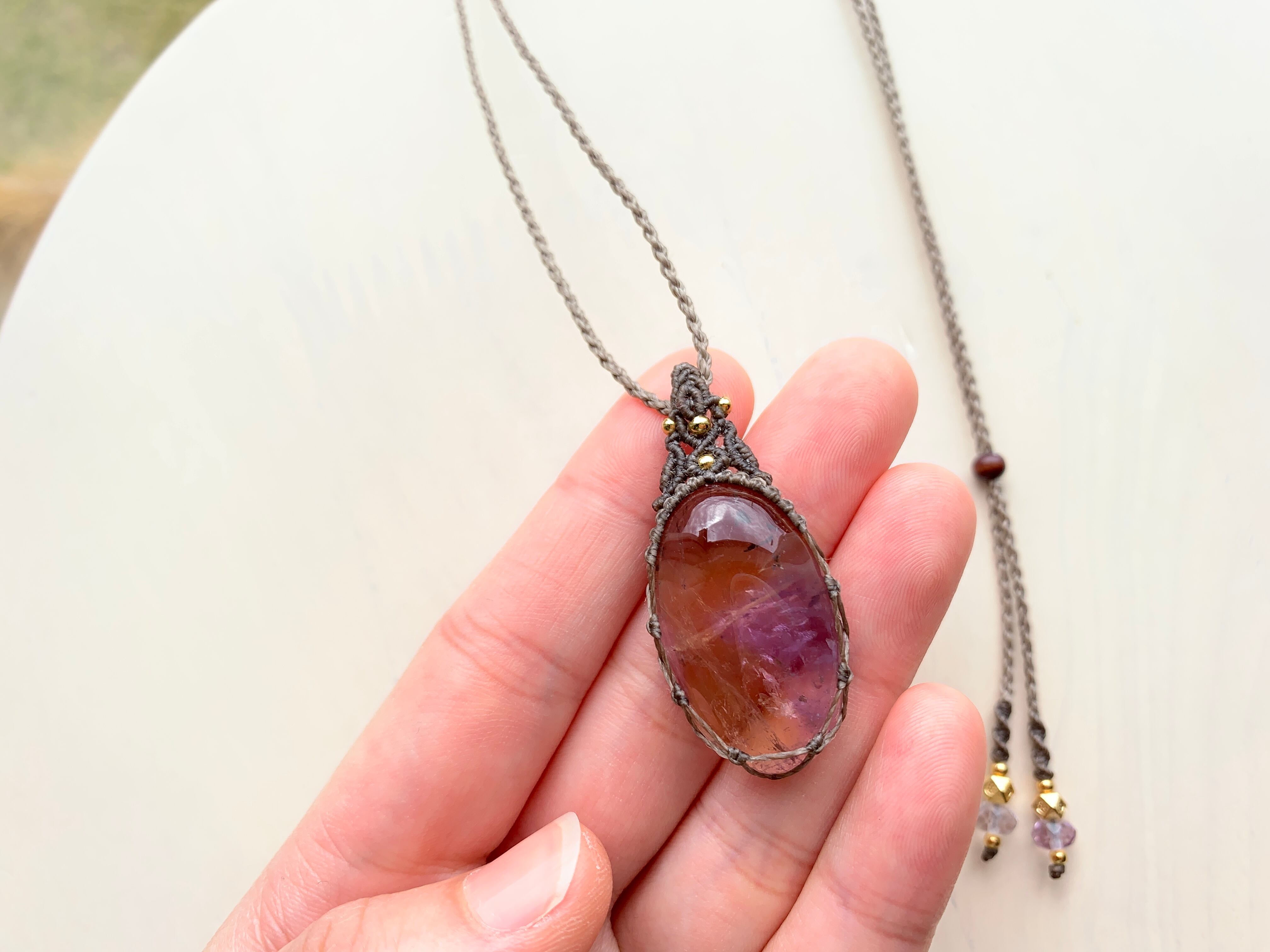 シトリン多めのツヤツヤアメトリンペンダントです。