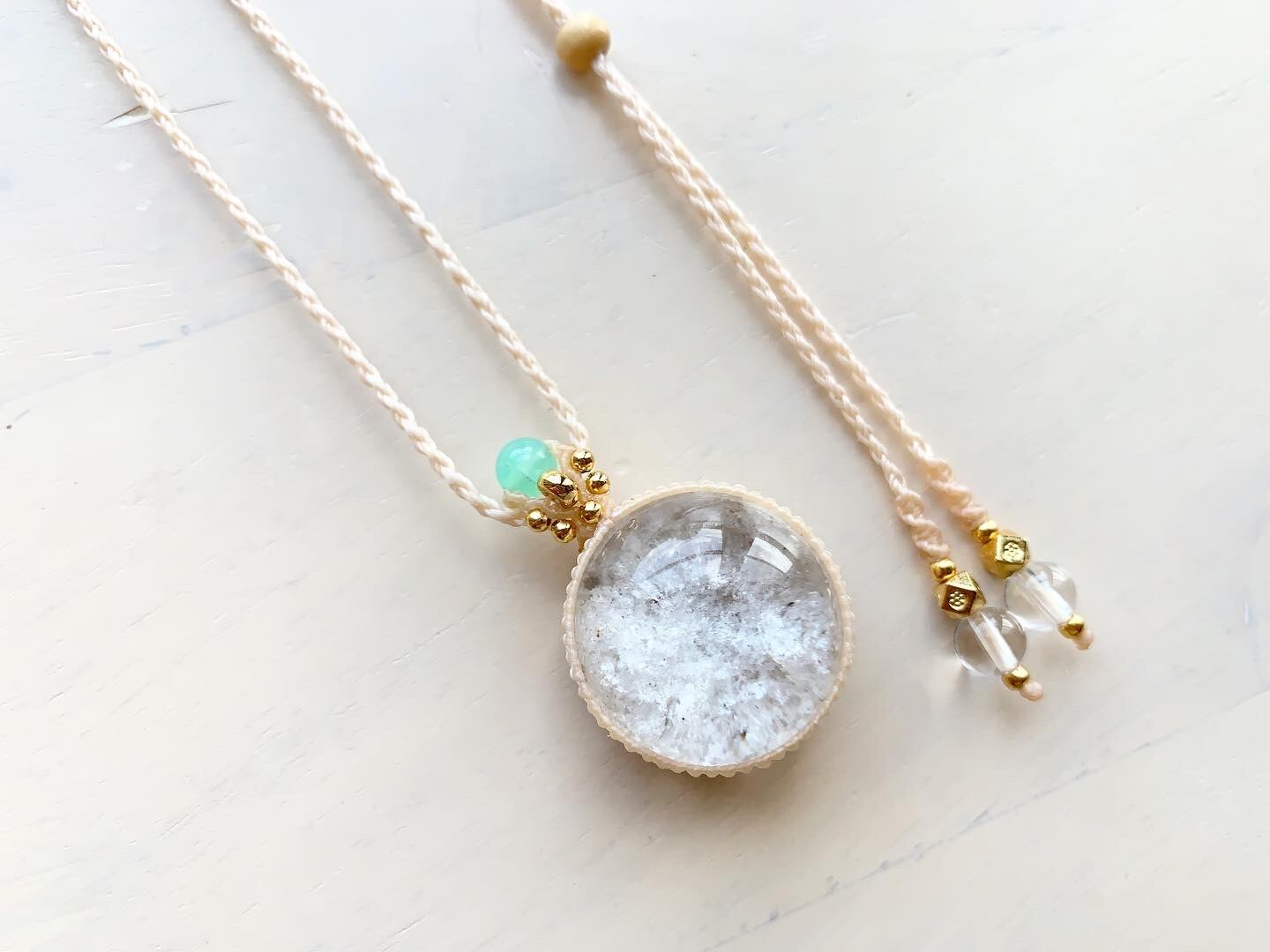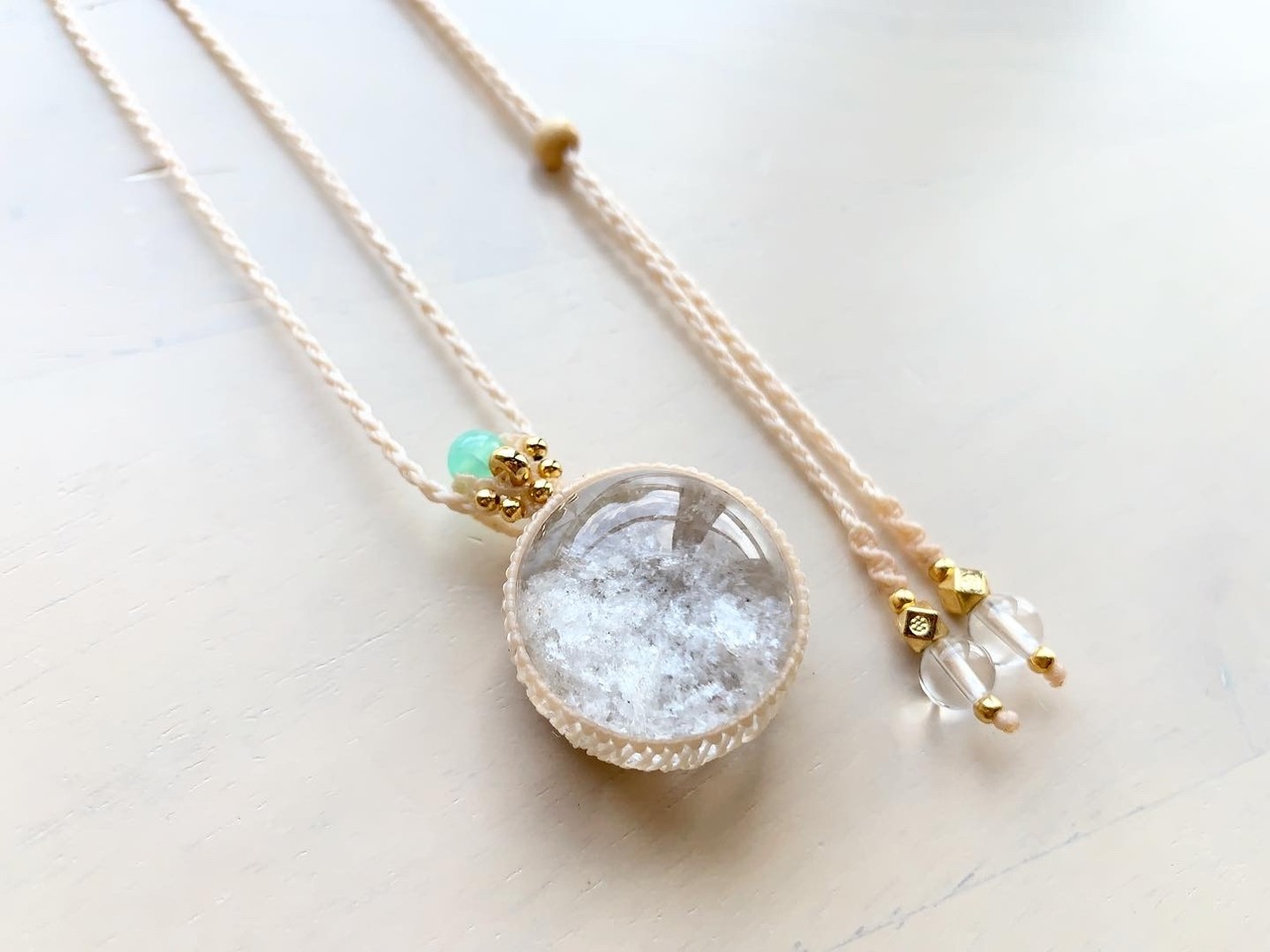 スノードームのような真っ白でコロンとしたホワイトガーデンクォーツのペンダントです。