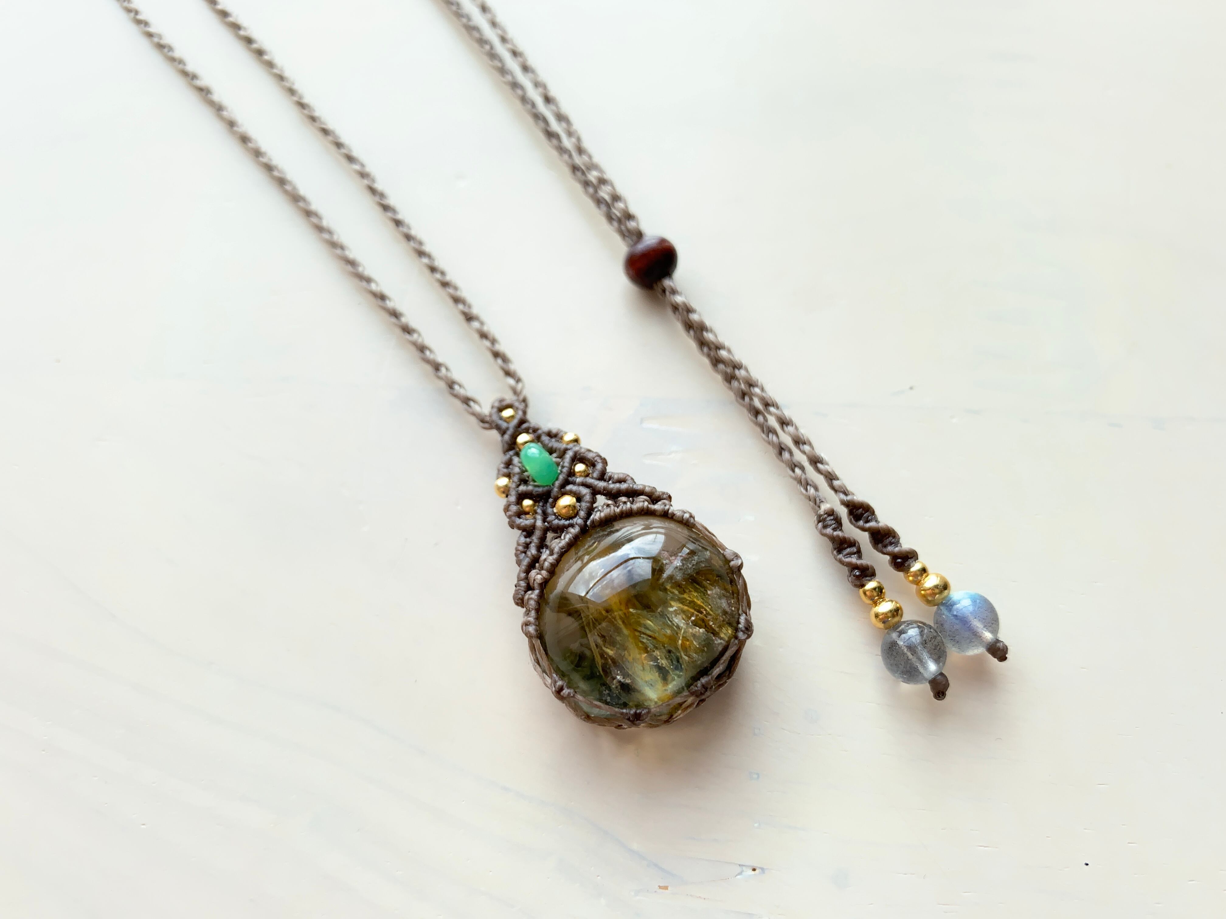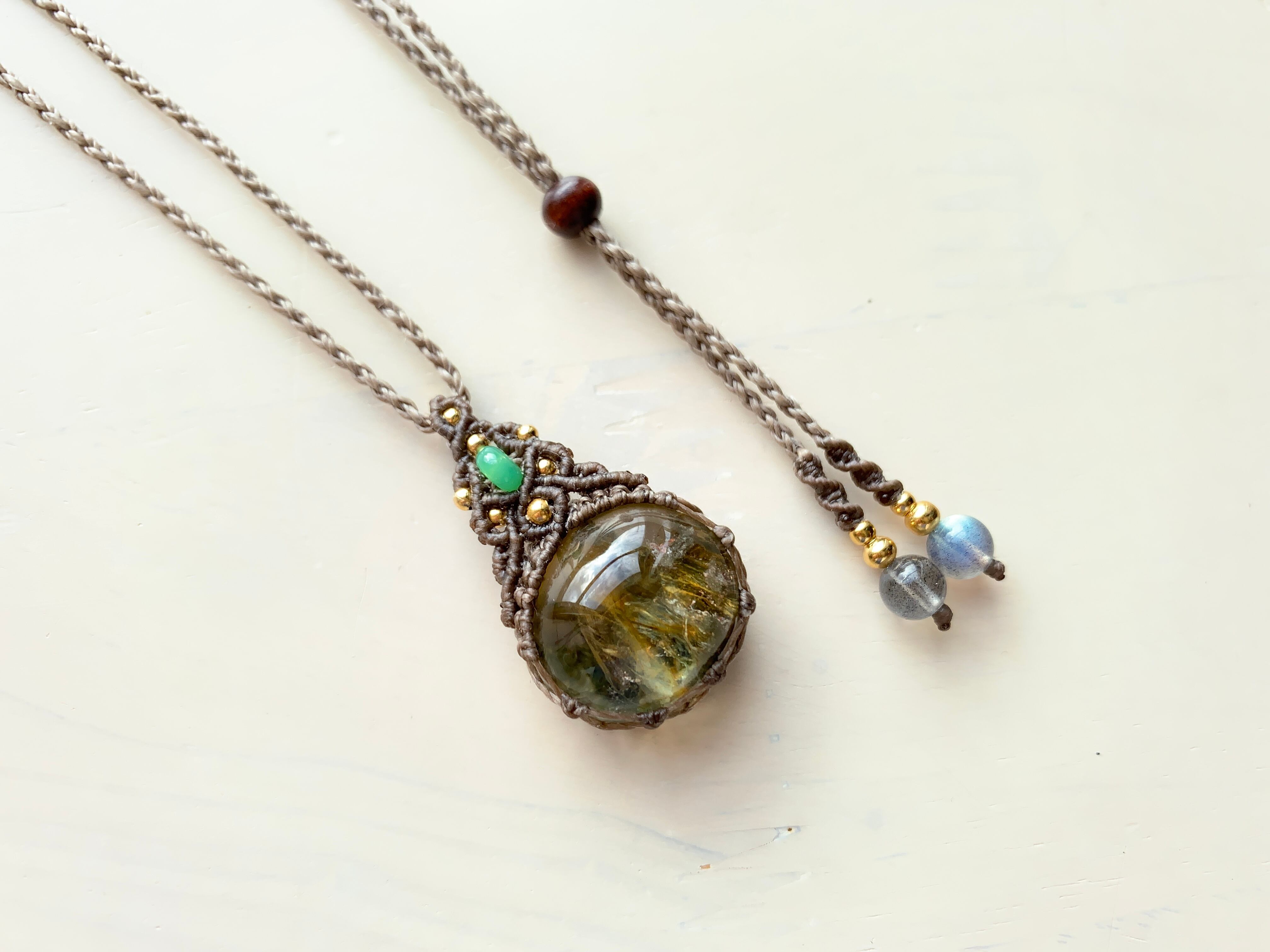 コロンと丸いフォルムが可愛らしい小ぶりなガーデンクォーツペンダントです。