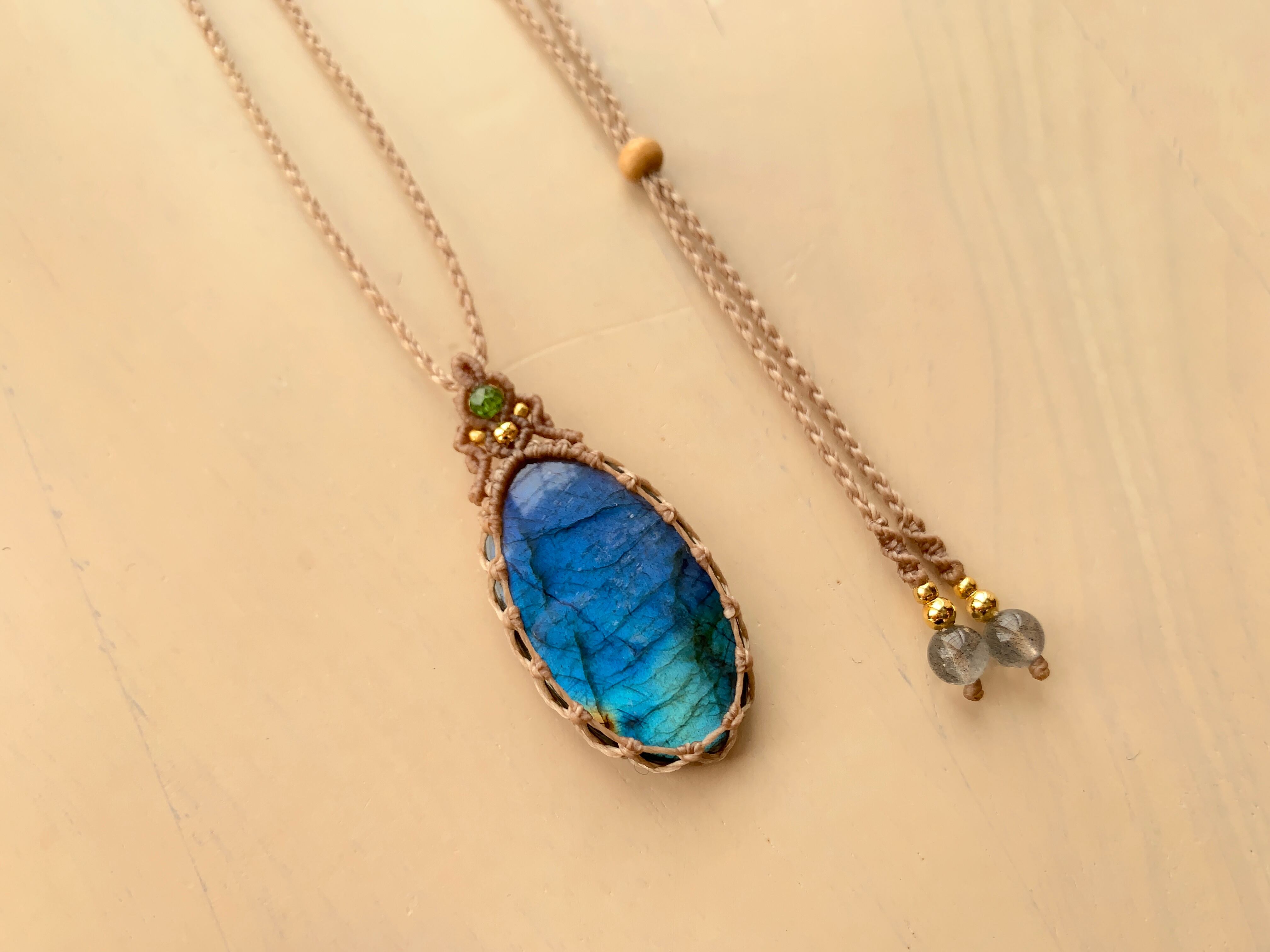 ブルーのシラーが美しく、薄手で身につけやすいラブラドライトのペンダントです。