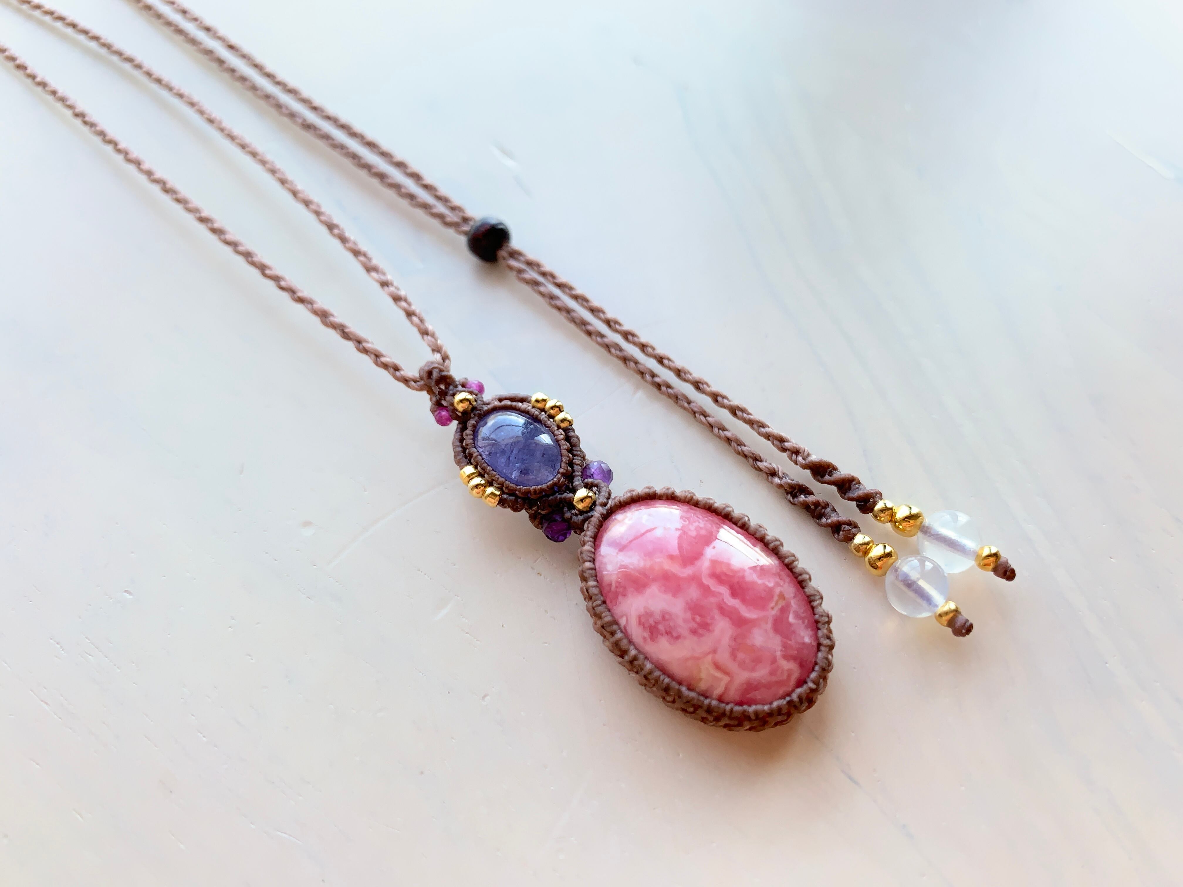 鮮やかな花びらのような模様が美しいインカローズにタンザナイトを合わせたペンダントです。