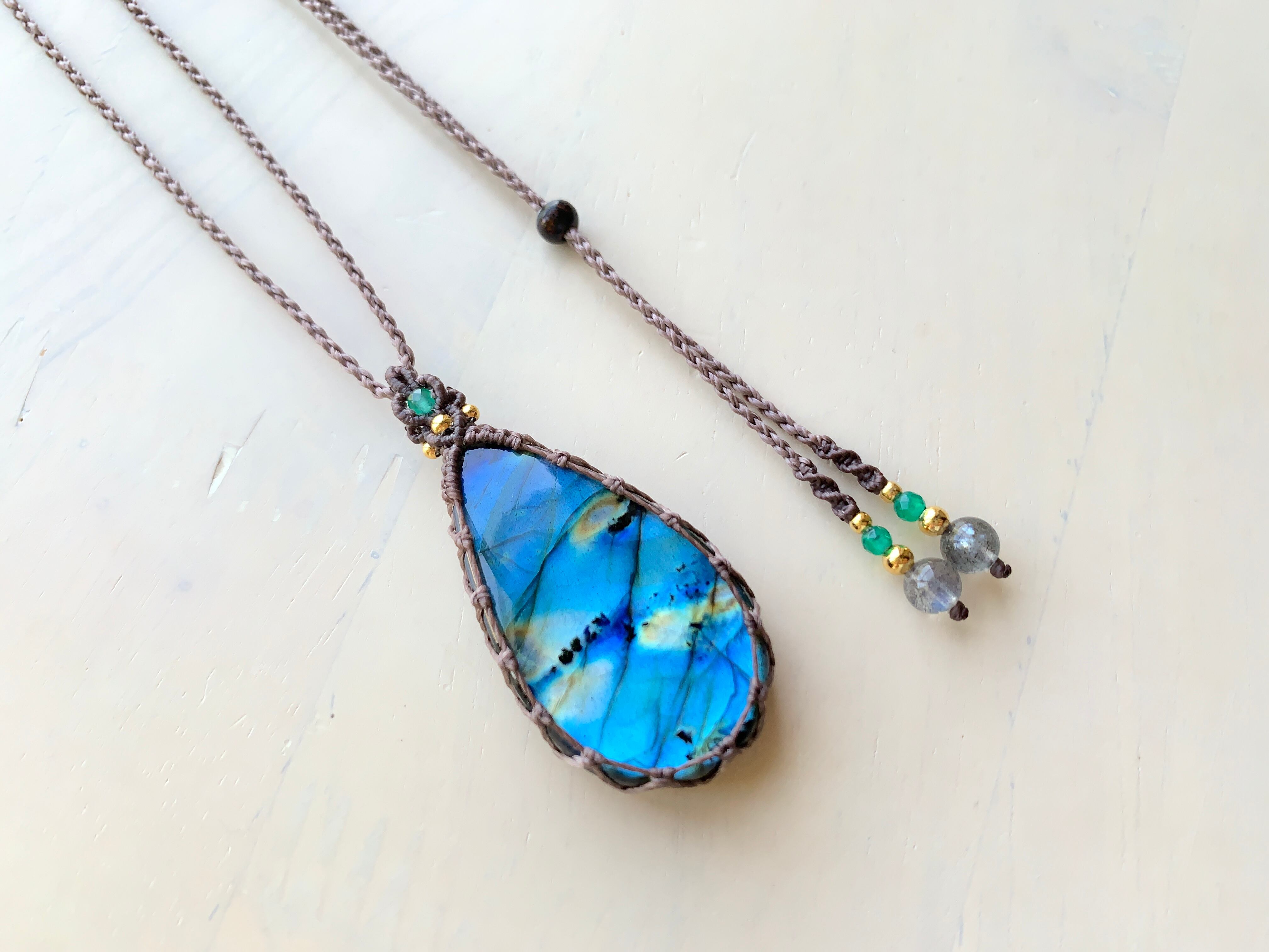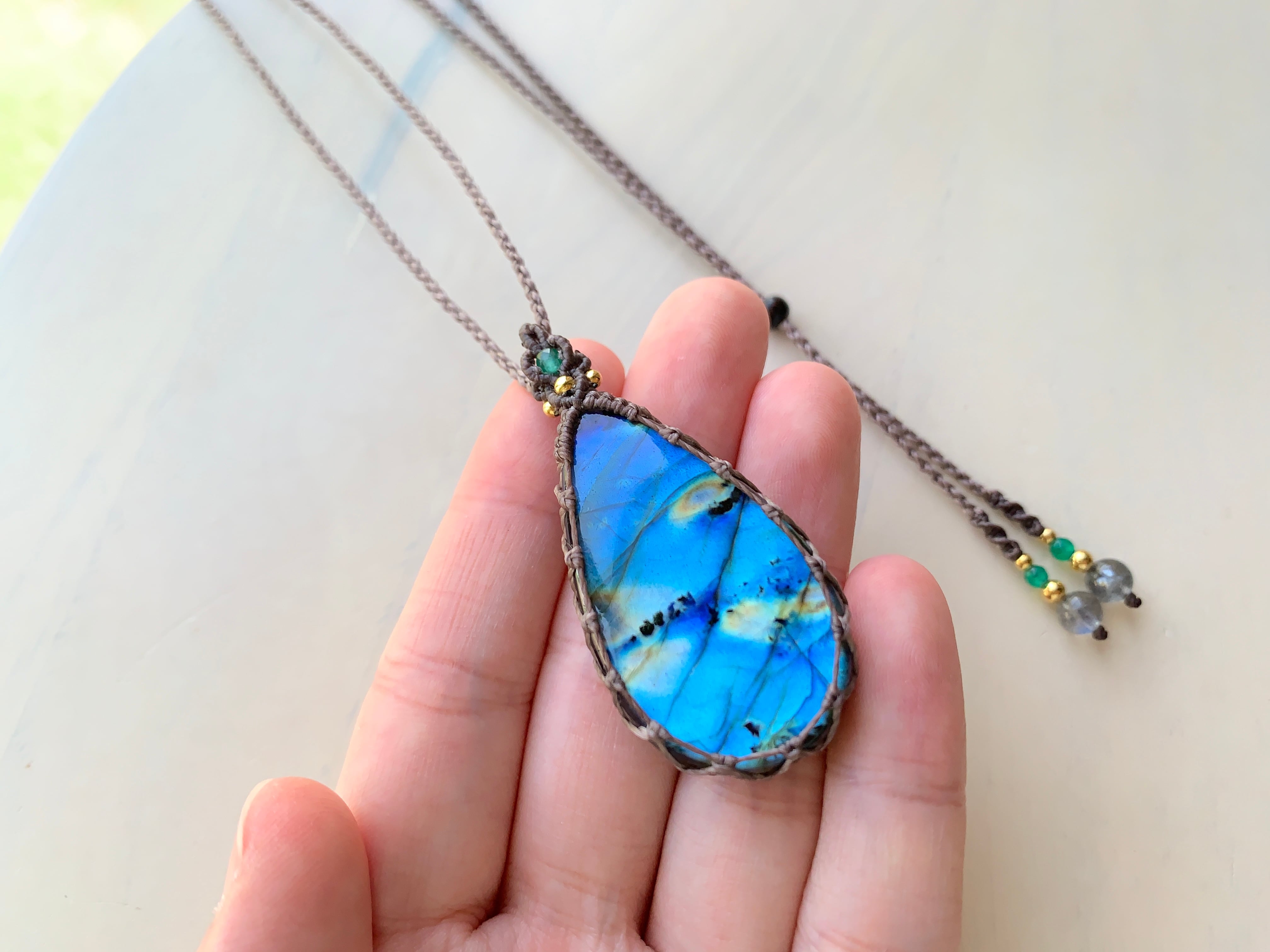 真っ青なシラーが美しい大きめなラブラドライトペンダント。存在感のあるペンダントをお探しの方、いかがでしょうか?