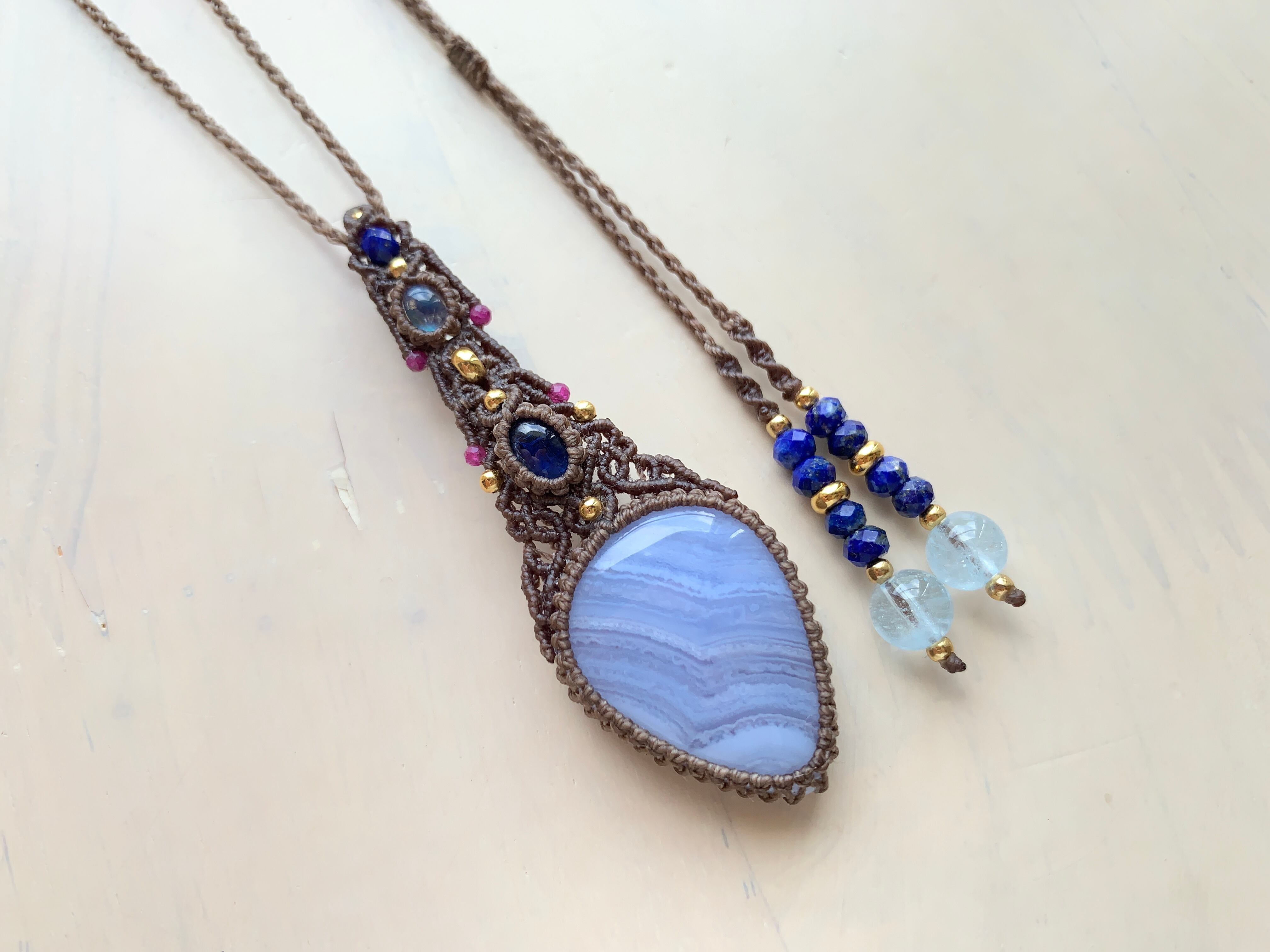 ブルーレースアゲート×カイヤナイト×ホワイトラブラドライト ペンダント