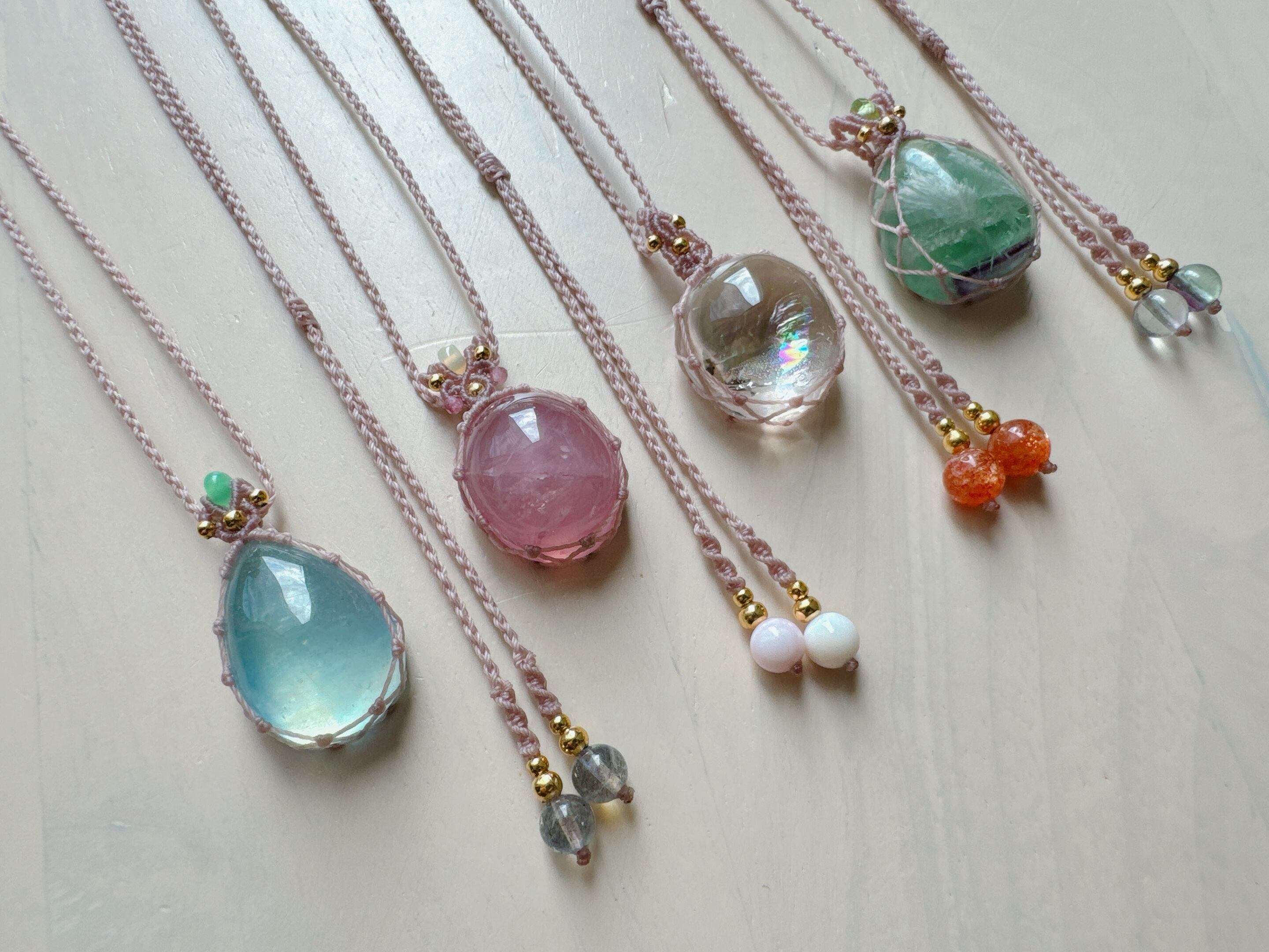ぷっくりツヤツヤなディープローズクォーツにオパール、ピンクトルマリンビーズを合わせました。